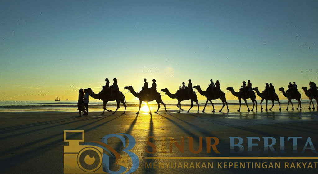 Cable Beach di Broome terkenal dengan pemandangan matahari terbenam yang dramatis dan cantik. Sambil menikmati senja, wisatawan dapat menunggangi unta dalam formasi camel conga untuk mendapatkan pengalaman tak terlupakan. Keunikan menjelajah gurun dan pantai sekaligus ini telah menjadi kegiatan favorit para wisatawan yang berkunjung ke Australia Barat.