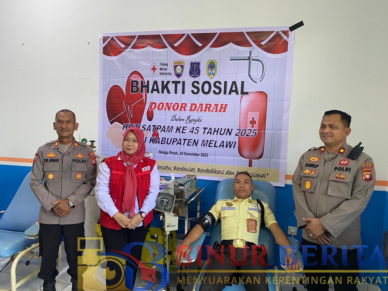 MELAWI, SINURBERITA.COM – Wakil Kepala Kepolisian Resort (Wakapolres) Melawi, Kompol Aang Permana, S.I.P., S.H., M.A.P. menghadiri sekaligus melakukan pengecekan langsung pada pelaksanaan Bhakti Sosial Donor Darah dalam rangka HUT Satpam ke-45 Tahun 2025, Rabu (10/12/2025). Kegiatan kemanusiaan tersebut digelar oleh Satbinmas Polres Melawi dan berlangsung di UTD RSUD Melawi.