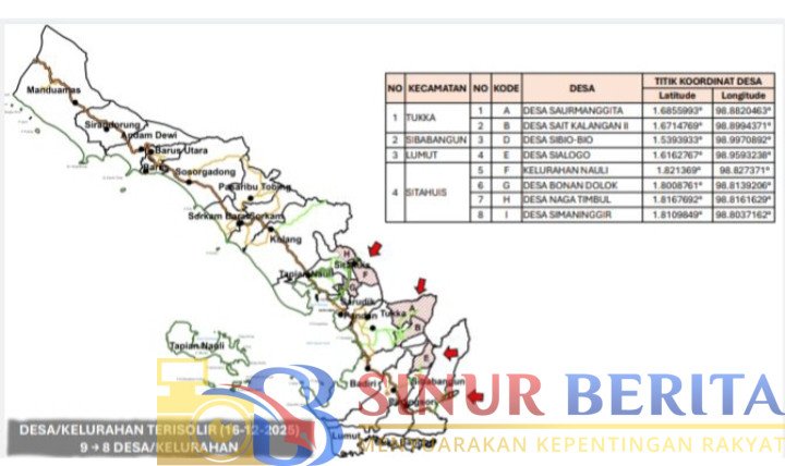 Sementara itu, dua desa berhasil keluar dari status desa terisolir yakni, Kelurahan Sipange (Kecamatan Tukka) dan Desa Hudopa Nauli (Kecamatan Kolang).