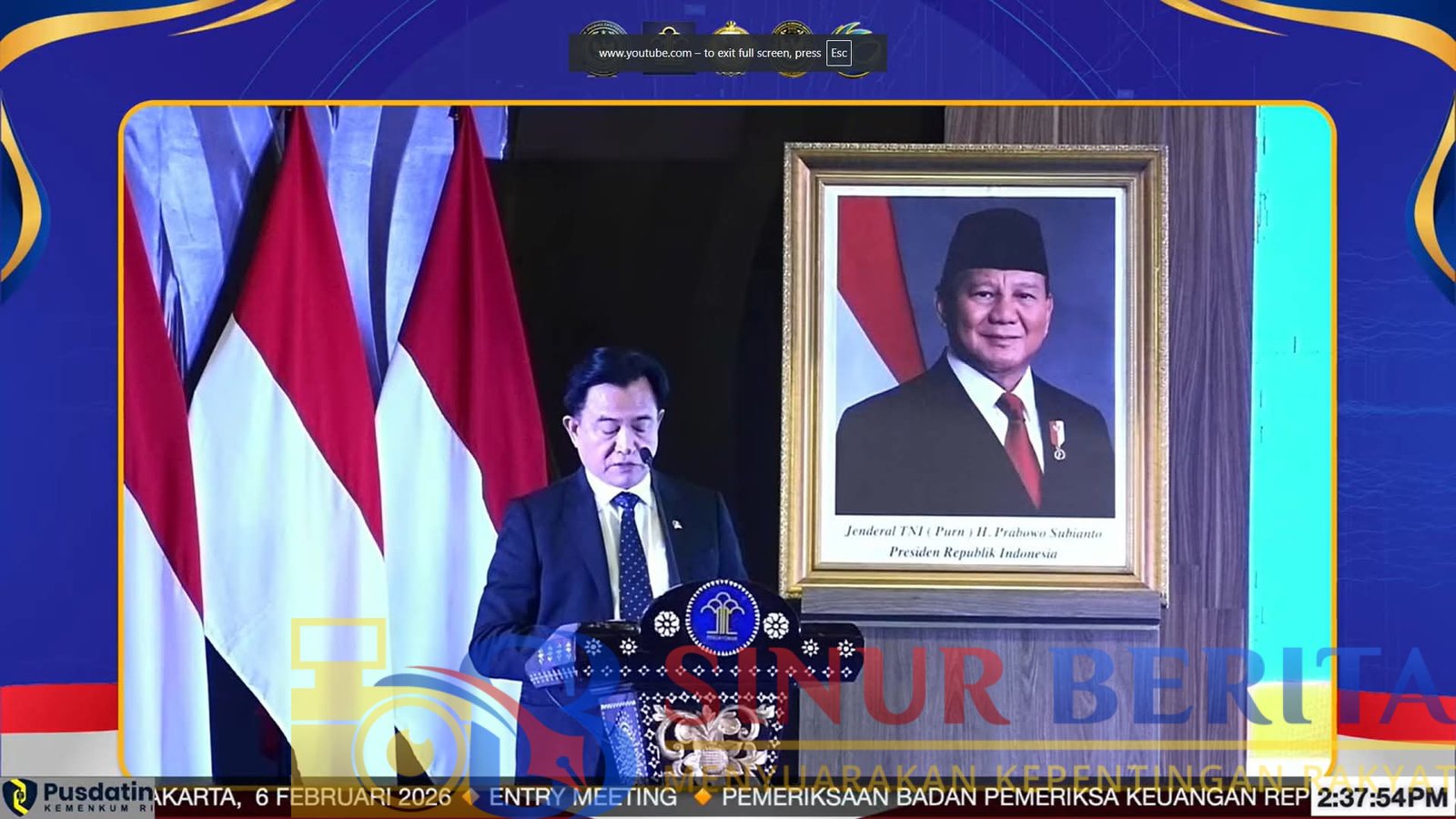 PEKANBARU, SINURBERITA.COM – Kepala Kantor Wilayah Kementerian Hukum Riau, Rudy Hendra Pakpahan, mengikuti kegiatan Entry Meeting Pemeriksaan Badan Pemeriksa Keuangan (BPK) RI atas Laporan Keuangan Kementerian Hukum Tahun Anggaran 2025 secara virtual pada Jumat (6/2). Bertempat di Ruang Rapat Kakanwil, kegiatan ini juga diikuti oleh Kepala Divisi Pelayanan Hukum Febri Mujiono, Kabag Tu dan Umum, Dean Satria serta jajaran.