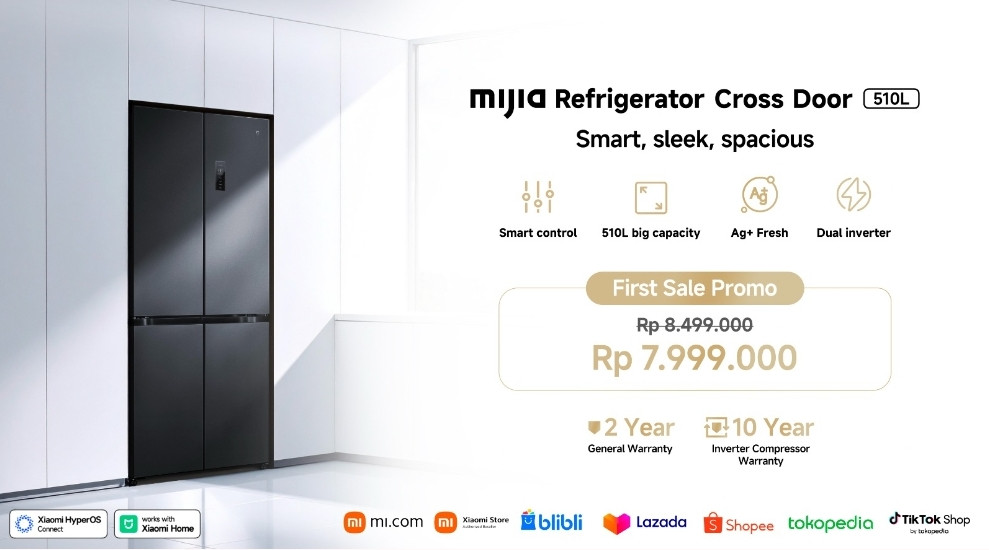 Mulai 6 Juni 2025, Mijia Refrigerator Cross Door 510L sudah tersedia melalui kanal penjualan resmi Xiaomi Indonesia dengan harga spesial hanya Rp7.999.000 selama periode promosi terbatas 6-9 Juni 2025 (harga normal Rp8.499.000). Anda bisa mendapatkannya di berbagai kanal resmi Xiaomi, termasuk Xiaomi Self Operated Store (Kota Kasablanka, MOI, Mall Ciputra, dan Cibinong City Mall 2), Xiaomi Authorized Store, serta platform online seperti Mi.com, Tokopedia, Shopee, TikTok Shop, Lazada, dan Blibli. (*red)